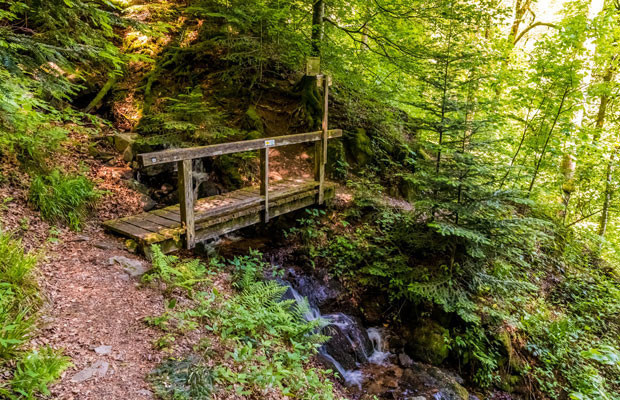 Uitgezette paden langs steile rotskloven en kronkelende beekjes, plaatsen om te pauzeren met spectaculaire uitzichten de diepte in, bomen met mos en waterdruppels die in de zon glinsteren. Wutachflühen, Wutachschlucht, Schleifenbachfälle, Haslachschlucht, Windbergwasserfall, Hohwehraschlucht en de Wehraschlucht zijn een reisdoel voor iedereen die van water houdt, graag door wilde ravijnen klimt, kolkende watervallen wil bewonderen, van de stille natuur geniet en zich een weekje terug wil trekken uit het alledaagse leven. Tussendoor zijn er steeds weer grandioze uitzichtpunten met uitgestrekte panorama’s over de valleien en ravijnen in het Zuidelijke Zwarte Woud met in de verte de Alpen. Koeien grazen in de bergweiden, ergens tsjirpt er een vogel in de bloemenweide langs het pad en gezellige tavernen in eeuwenoude huizen van het Zwarte Woud wachten op hongerige wandelaars van de Schluchtensteig.